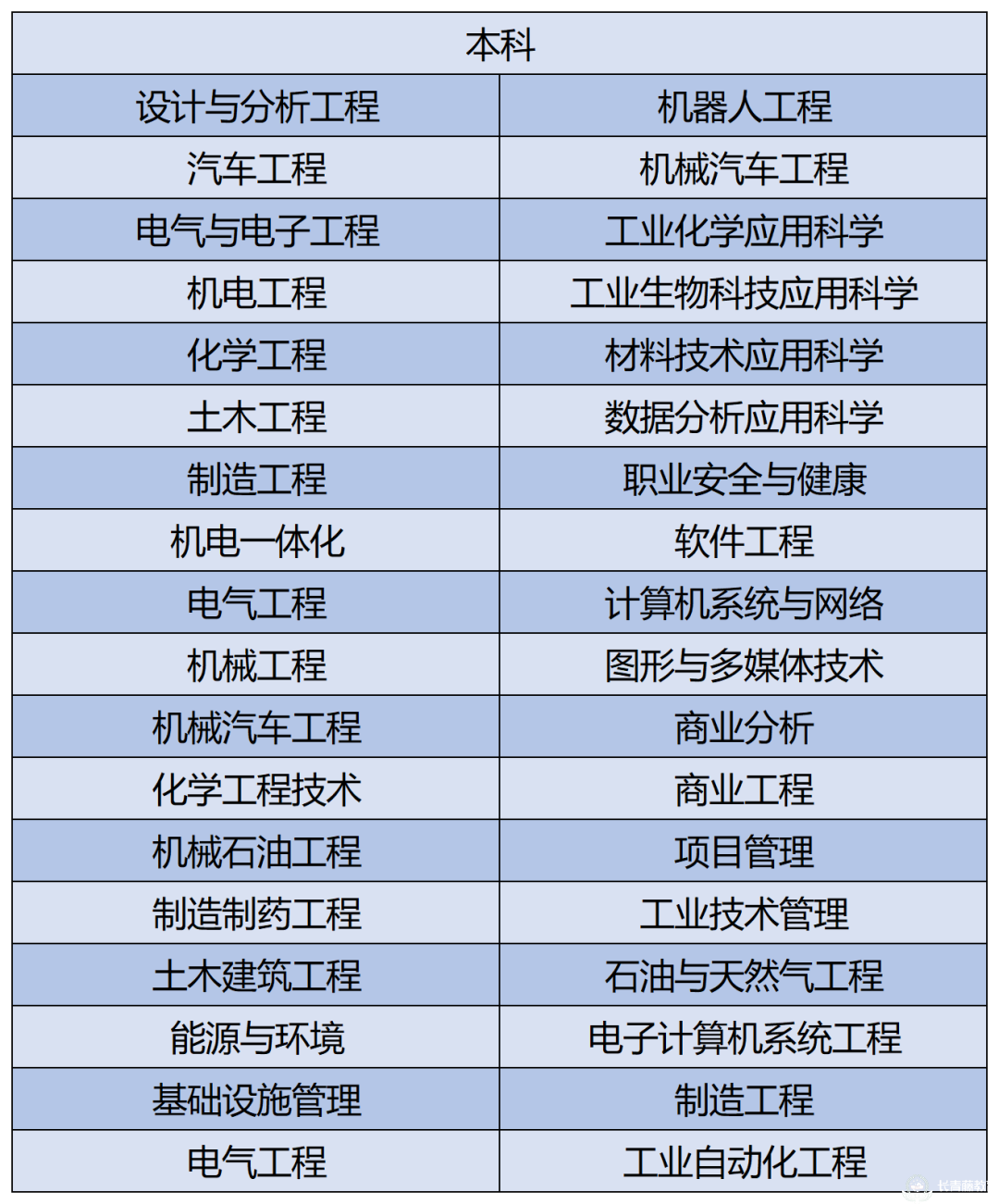 本科专业:机电一体化工程、土木工程、软件工程、计算机系统与网络、图形与多媒体技术、项目管理硕士专业:工商管理、计算机网络、软件工程、信息与通讯技术、机械工程